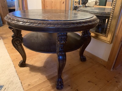 Antiker Runder Tisch Mit Marmor Platte Lowen Beine Tatzen Ebay