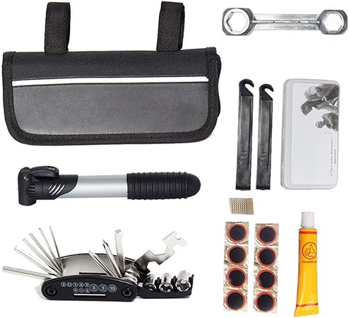 Trousse D Outils De Velo Outil De Reparation De Tournevis 16 En 1 Avec Leviers De Pneu Pompe A Velo Rape En Metal Et Kit De Patch Amazon Fr Sports Et Loisirs